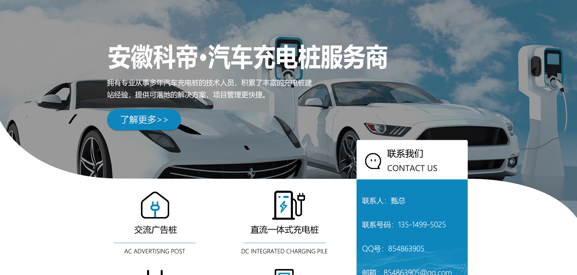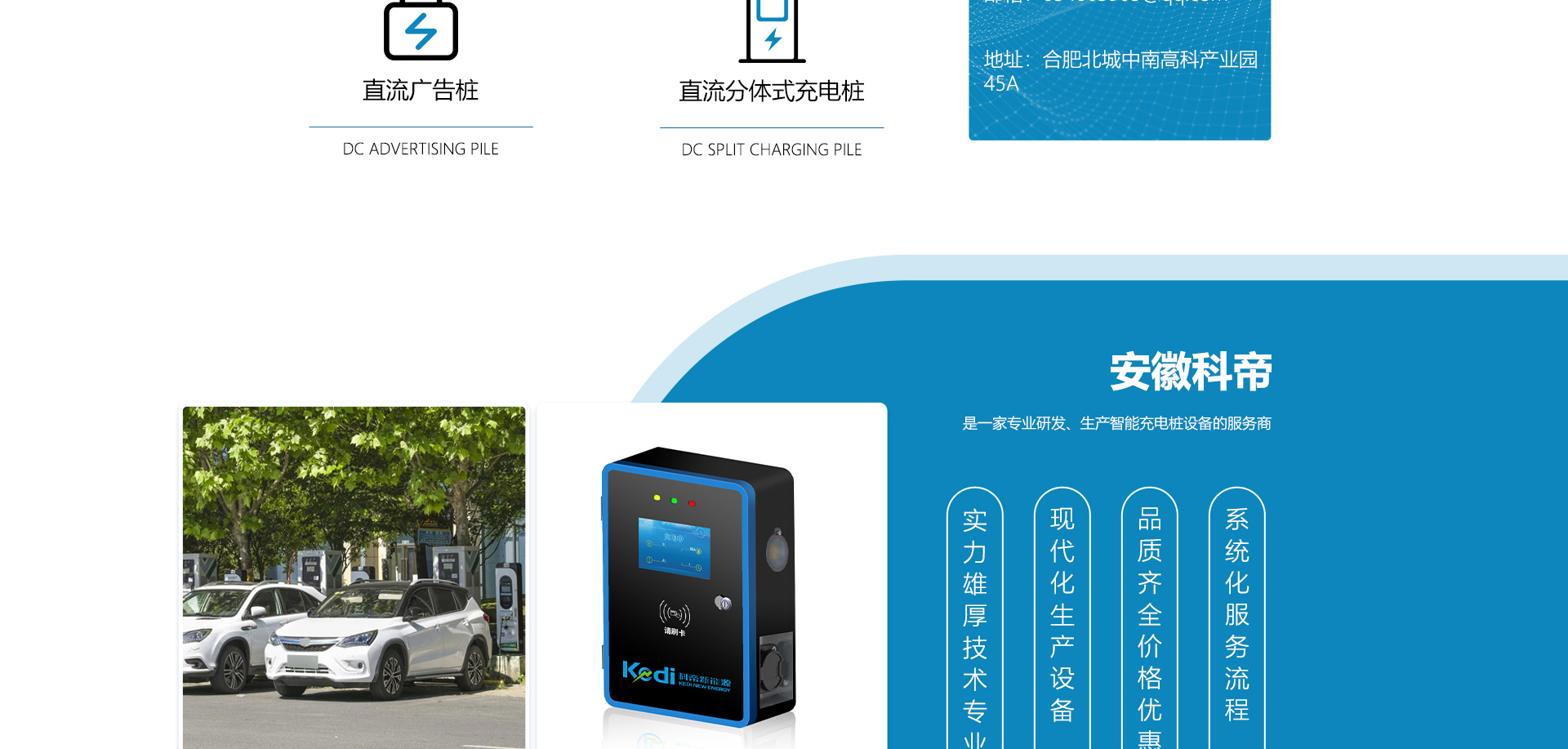 關于我們安徽科帝新能源科技有限公司坐落于安徽省會-合肥,是一家研發(fā)、生產(chǎn)智能充電樁設備,汽車充電站后臺監(jiān)控管理系統(tǒng)和生產(chǎn)高壓開關設備的企業(yè).由專門的研發(fā)團隊、管理團隊按照現(xiàn)代化企業(yè)制度規(guī)范設立的有限責任公司。致力于為能源智能、安全的應用和節(jié)能減排提供整體的技術與產(chǎn)品解決方案。科帝集研發(fā)、設計、生產(chǎn)、銷售以及服務于一體,在電動汽車充電方案,充電設施建設和城市配電方面擁有廣泛的技術研究及經(jīng)驗積累,為客戶提供安全、智能的充電設備及充電運營站建設一體化解決方案。并堅持以人為本、質(zhì)量為先、顧客至上、不斷創(chuàng)新”的企業(yè)理念,為能源行業(yè)的發(fā)展、節(jié)能減排做出重大的貢獻。公司擁有豐富的產(chǎn)品種類,目前科帝已研發(fā)生產(chǎn)了三十多種產(chǎn)品,充電設備有直流一體式充電樁、直流分體式充電樁、直流廣告樁、交流廣告樁、廣告一體樁、壁掛交直流樁;等多種充電設備;每一款產(chǎn)品都是精心打造,力求為客戶提供優(yōu)越的用戶體驗。展望未來科帝將通過持續(xù)的自...